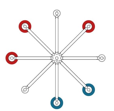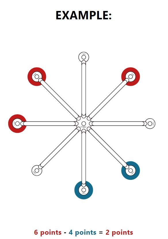 Alternate tuns, attempting to land each peg in order. Finishing at the center peg to WIN!