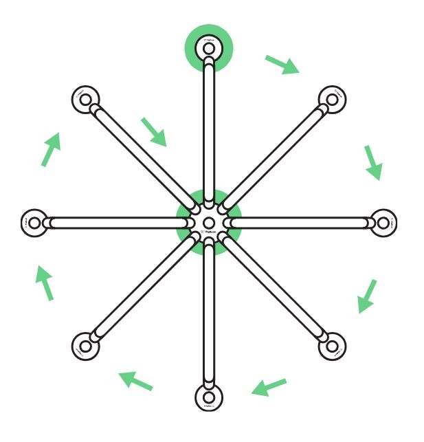 Work your way around the FlyBean unit, landing every peg before your opponent to WIN!